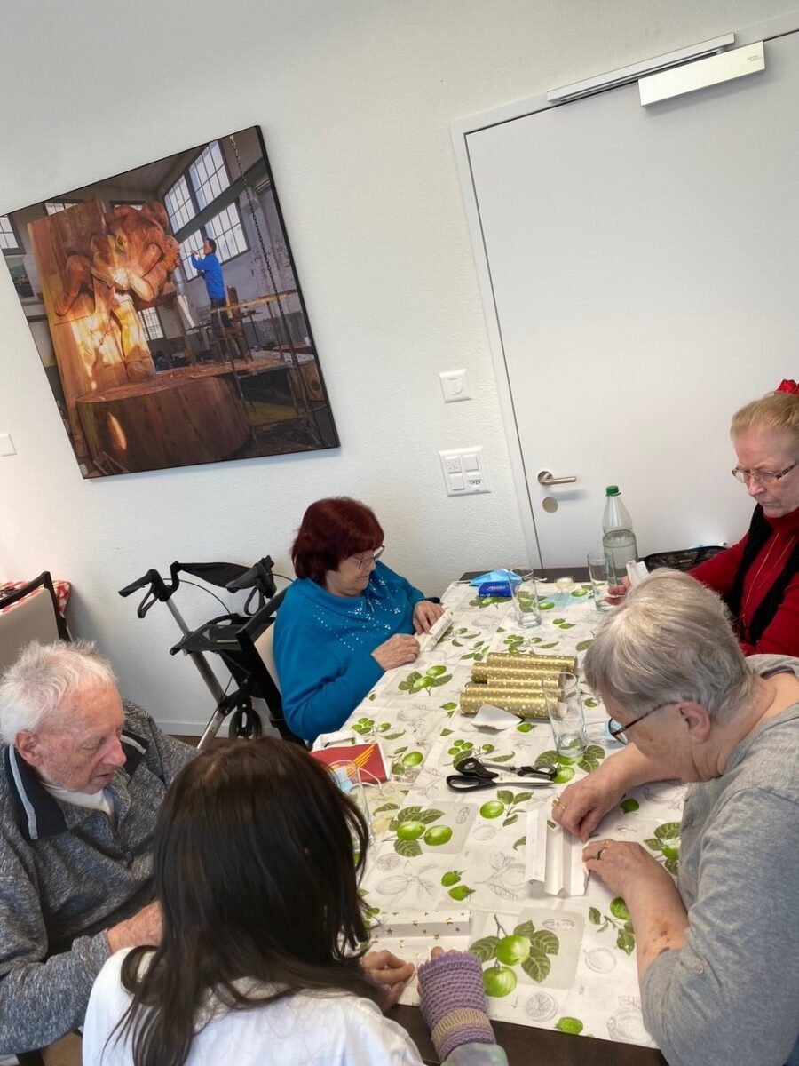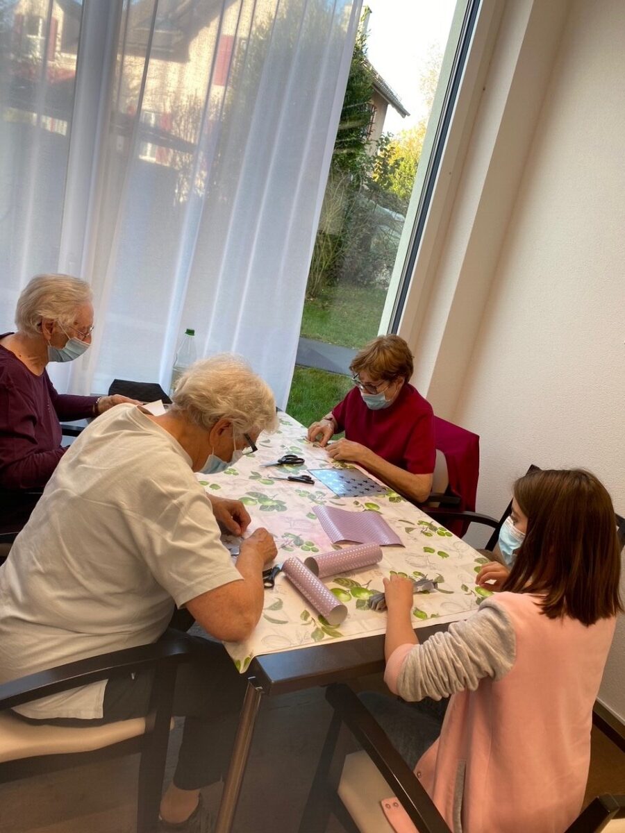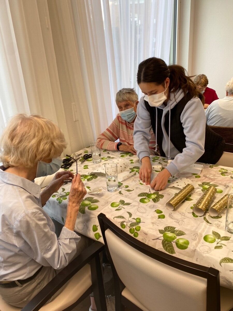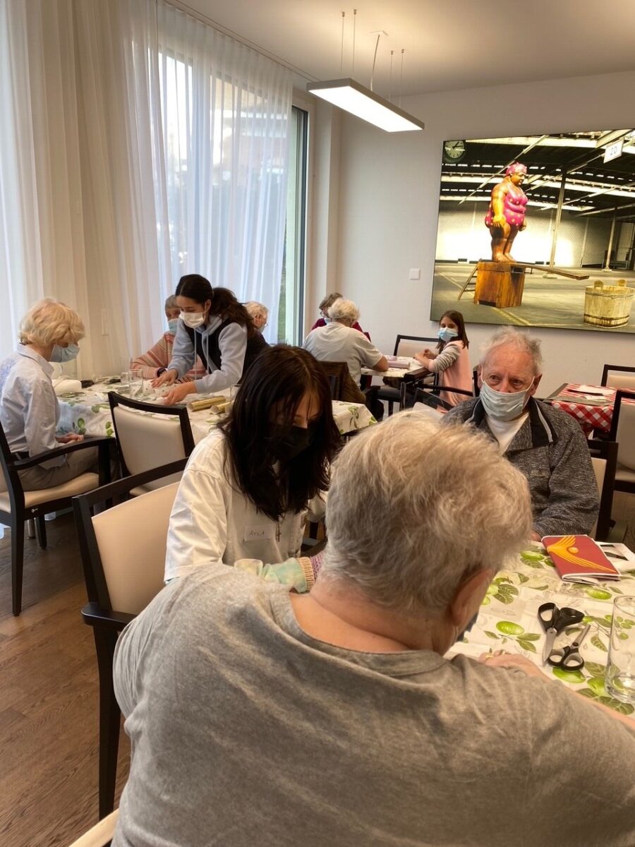 Nach dem Mittagessen haben wir mit den Seniorinnen und Senioren einen Aktivierungsnachmittag veranstaltet. Gemeinsam haben wir Engel gefaltet. Die Jungen haben den Senioren dabei geholfen, wo es zu helfen gab. Es war ein abwechslungsreicher und sehr interessanter Tag für alle.