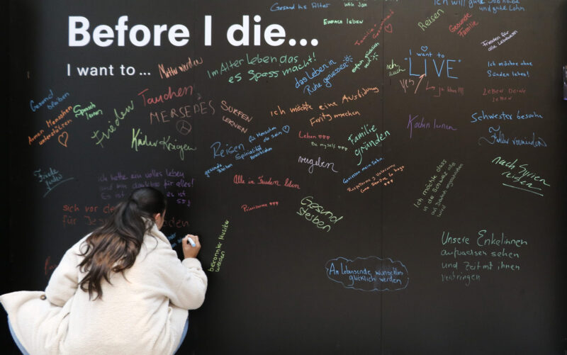 Es ist leicht, sich im Alltag zu verzetteln und zu vergessen, was einem wirklich wichtig ist. Die «Before I die»-Wand lädt Menschen jeden Alters dazu ein, zu hinterfragen, was sie in der ihnen verbleibenden Zeit auf dieser Erde noch tun und erleben möchten.