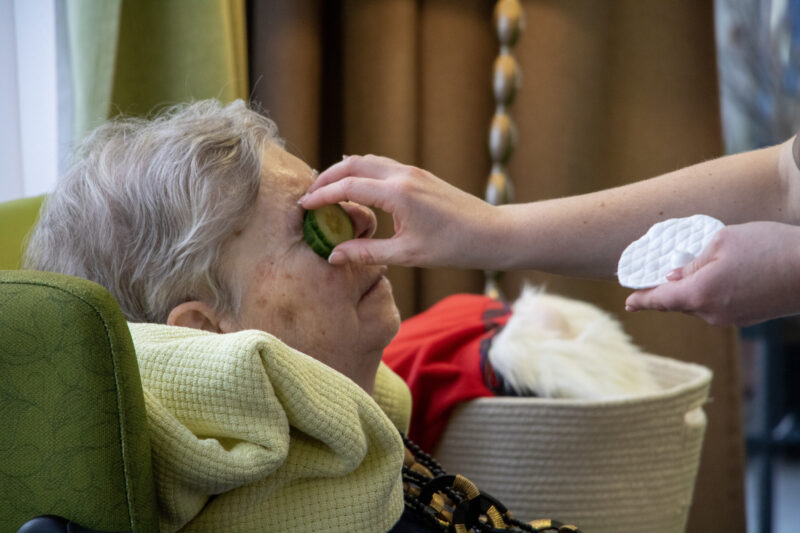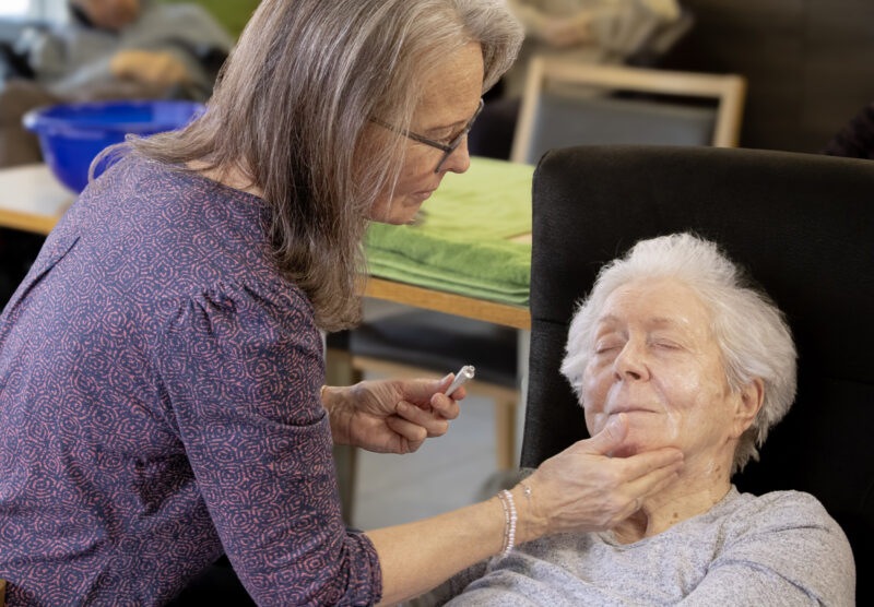 Immer einmal im Monat verwandelt sich die Pflegewohngruppe in der Oase am Rhein in einen echten Wellnesstempel. An diesen Nachmittagen sorgt sanfte Hintergrundmusik für die richtige Stimmung und der Duft von Gesichtscreme