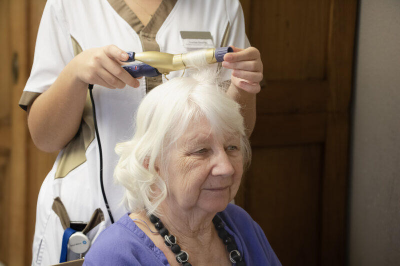 Die Bewohnerinnen und Bewohner lassen sich so richtig verwöhnen. Niemand lässt sich diesen speziellen Nachmittag entgehen. Die Pflegerinnen erfüllen mit Hingabe jeden Wunsch – von Handpeeling über Fussbäder und Nagellack bis hin zur Gesichtsmaske inklusive Gurken auf den Augen ist alles dabei. Zum krönenden Abschluss werden auch noch die Haare hübsch frisiert. Zapfenlocken sind besonders hoch im Kurs. Als Stärkung gibt es danach Kaffee und selbstgebackene Guetzli.