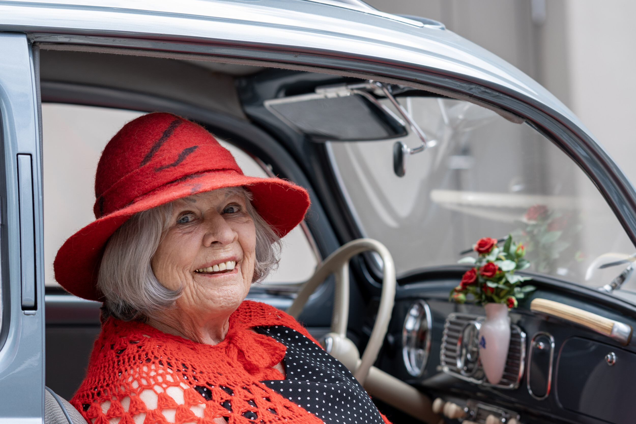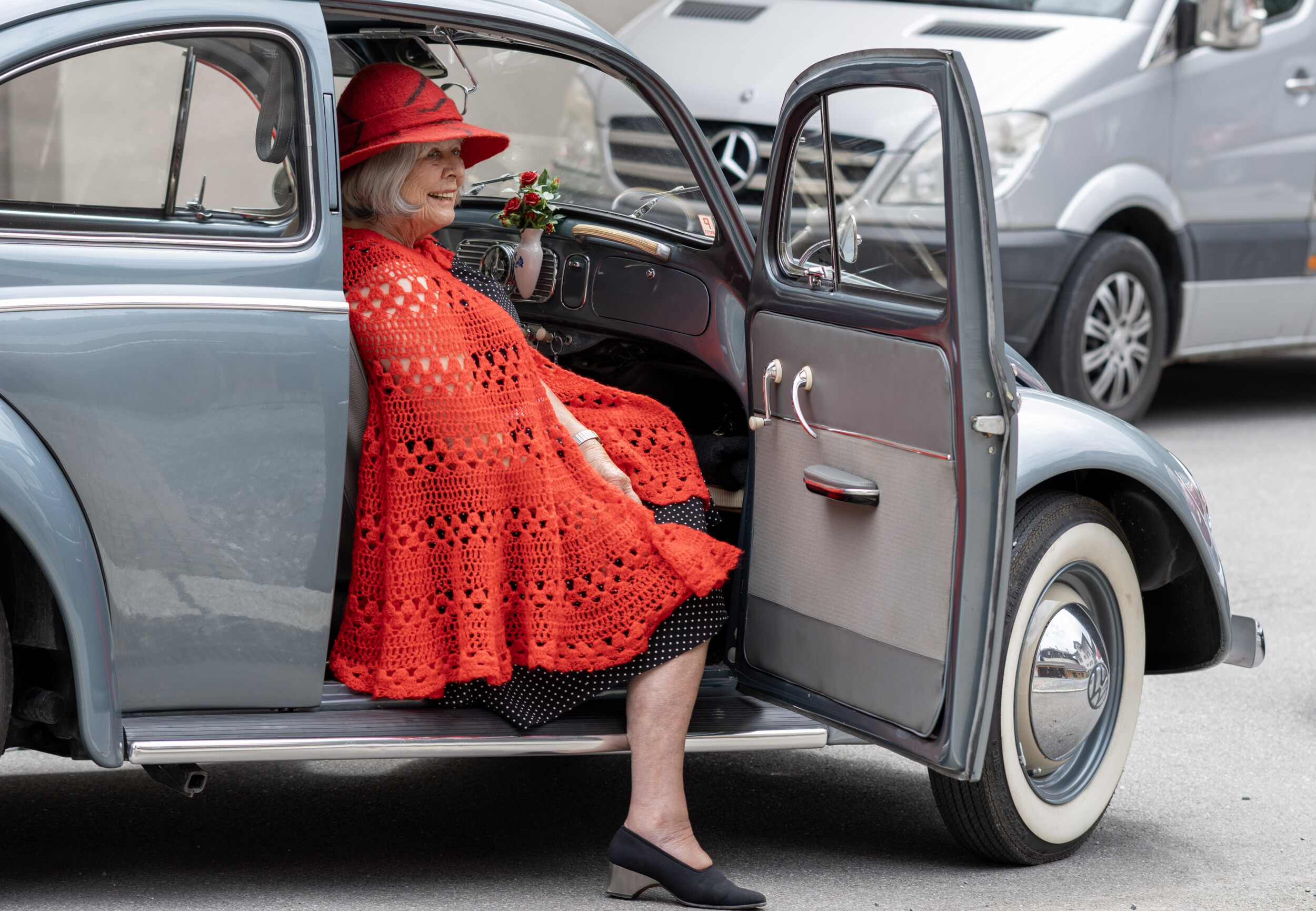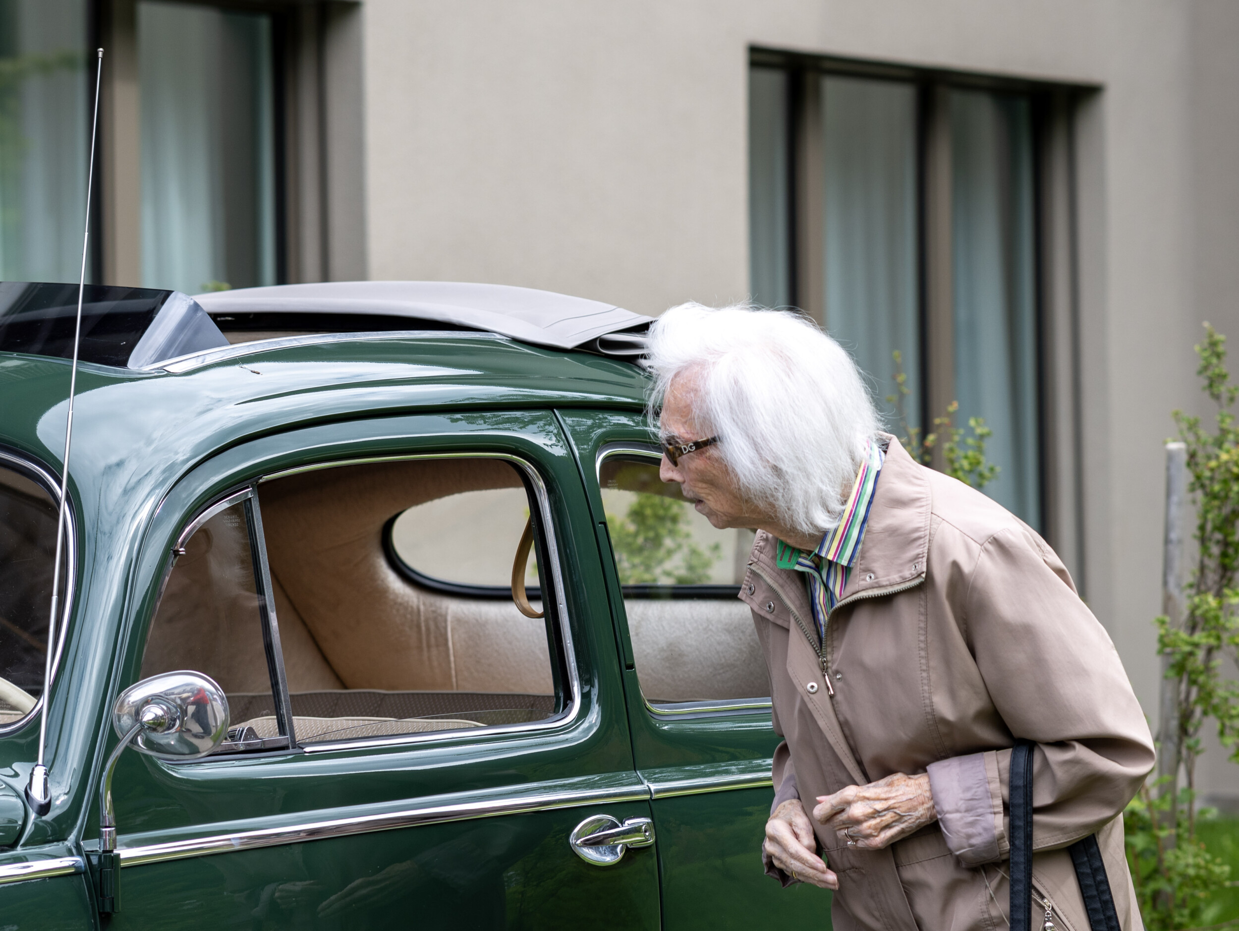 «Ich habe mir extra ein Kleid von Jenny (Co-Leitung Gastronomie Oase Churwalden) ausgeliehen für diesen speziellen Anlass», erklärte mir Hannelore stolz. Passend zum gepunkteten Kleid trug sie ein rotes selbstgehäkeltes Cape und einen roten Hut. Es sah fast so aus, als wären die Autos eigens für sie organisiert worden.