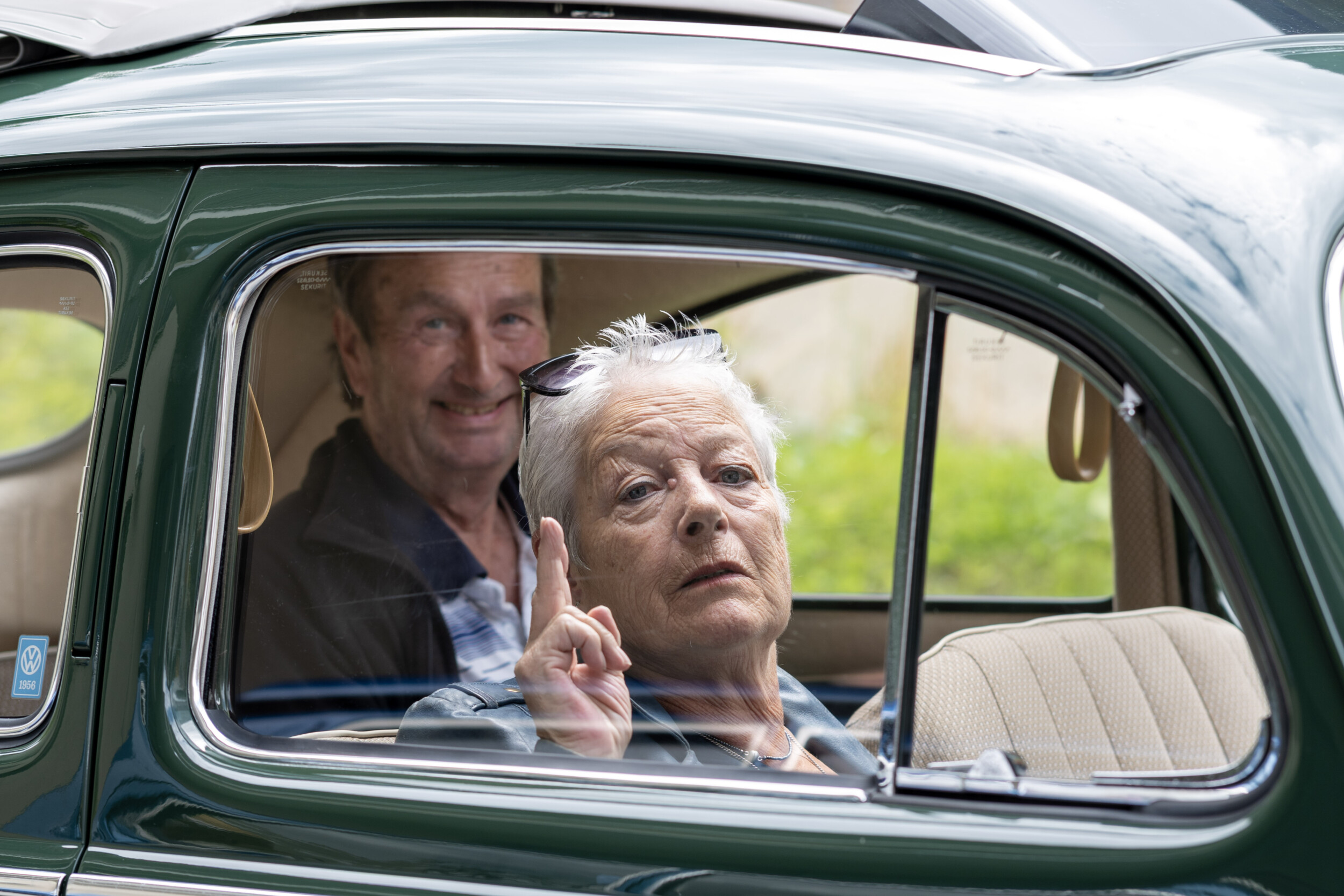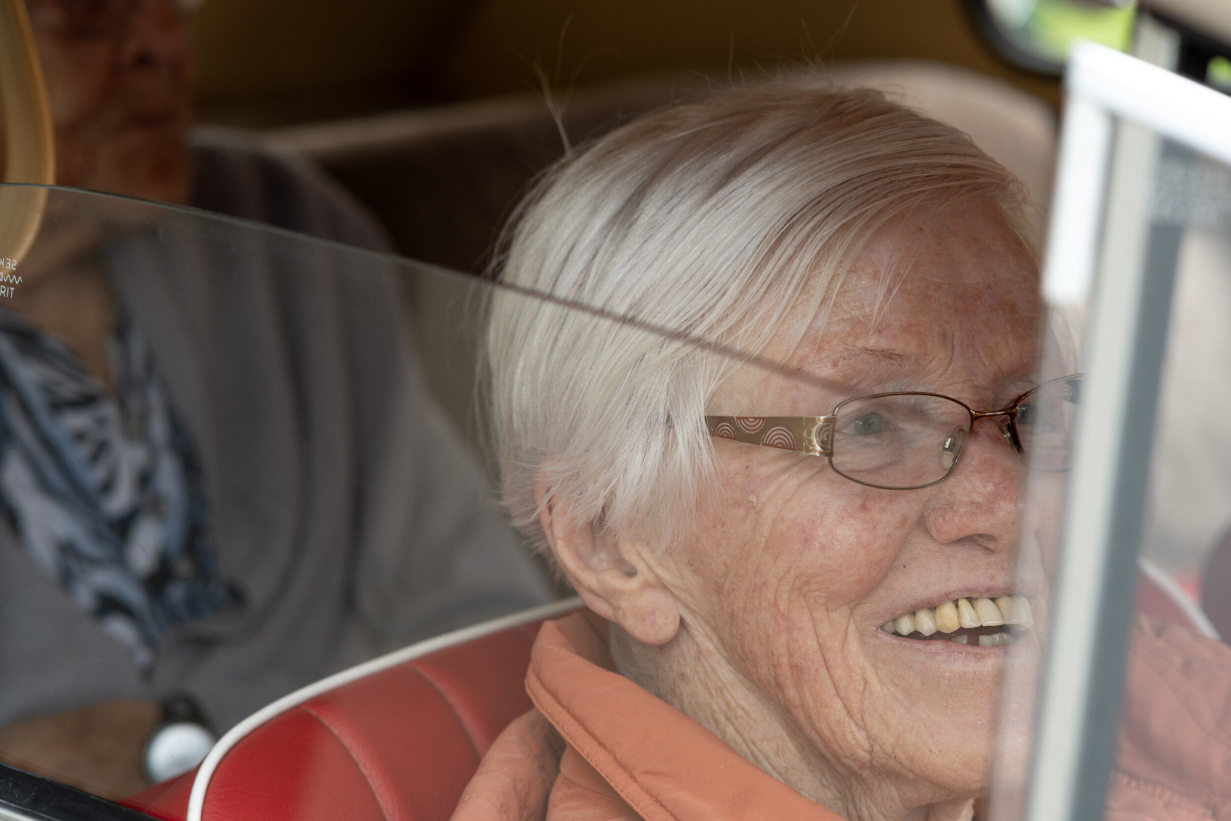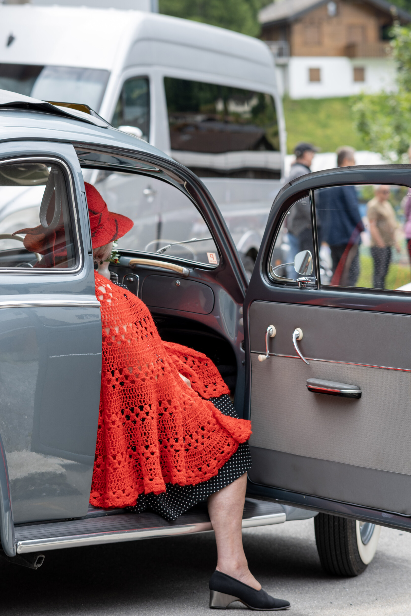 «Ich habe mir extra ein Kleid von Jenny (Co-Leitung Gastronomie Oase Churwalden) ausgeliehen für diesen speziellen Anlass», erklärte mir Hannelore stolz. Passend zum gepunkteten Kleid trug sie ein rotes selbstgehäkeltes Cape und einen roten Hut. Es sah fast so aus, als wären die Autos eigens für sie organisiert worden.